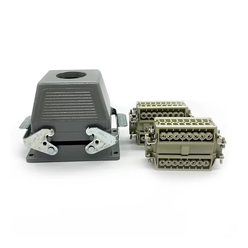 32 Pin TG Heavy Duty Connectors များသည် အမျိုးသား ထိပ်တန်း အိမ်ရာ အစိတ်အပိုင်း ဖြစ်သည် ပုံမှန်အားဖြင့် ၎င်းကို HE-016-M အပိုင်းနှစ်ပိုင်းဖြင့် ပြင်ဆင်ထားသော်လည်း အချို့သော အထူးဝယ်ယူသူများ၏ တောင်းဆိုချက်မှာ HE-016-F အပိုင်းနှစ်ပိုင်းဖြင့် စုစည်းထားခြင်းဖြစ်သည်။ ၎င်းသည် HSB-016 အတွက်အိမ်ရာလည်းဖြစ်သည်။ IP65 ရေစိမ်ခံသောအင်္ဂါရပ်က ၎င်းကို ပြင်ပတွင်သုံးနိုင်သည့်အရာဖြစ်သည်။ 32 Pin TG Heavy Duty Connectors များသည် PG29 နှင့် ကိုက်ညီပါသည်။ အကယ်၍ သုံးစွဲသူများသည် မတူညီသော cable gland အရွယ်အစား တောင်းဆိုမှုများရှိပါက၊ ကျွန်ုပ်တို့ လက်ခံပြီး ထုတ်လုပ်ရန် အမိန့်ပေးနိုင်ပါသည်။