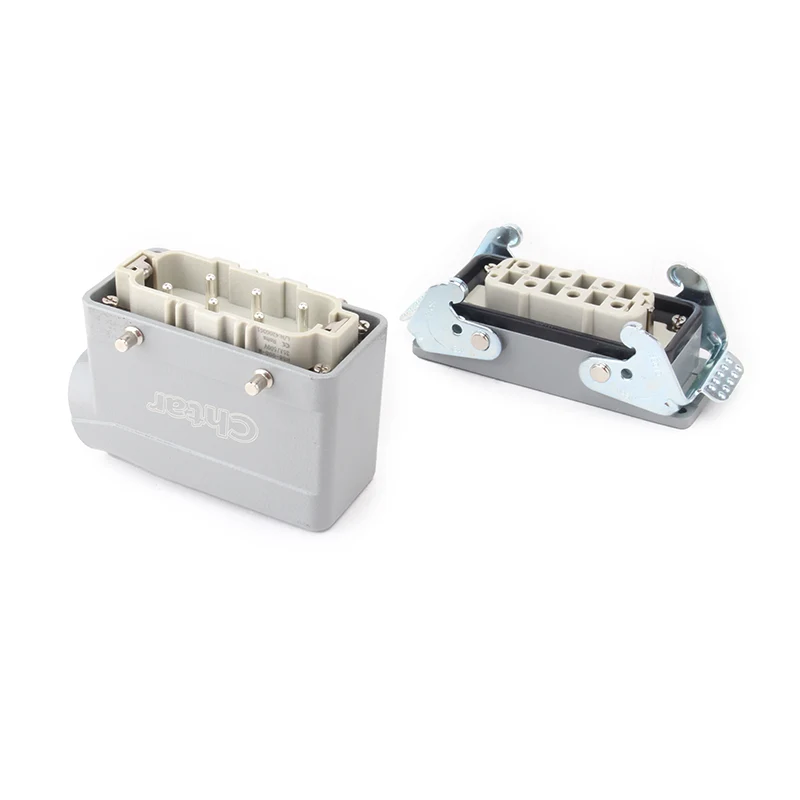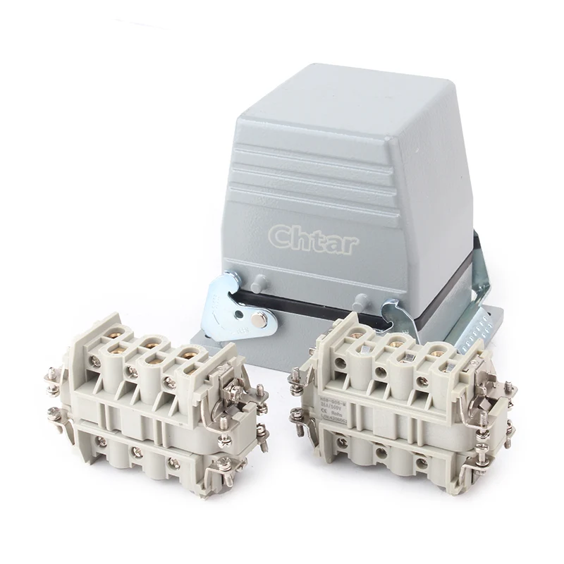 35A 6 Pin Insert Heavy Duty Connector ကို H16B Aluminium Housing တွင် အလုပ်လုပ်သော အကြီးစား Connector ဖြစ်သည်။ ခိုင်ခံ့သော PC ပစ္စည်းနှင့် ကြေးဝါငွေဖြင့် ပြုလုပ်ထားသည်။CHTAR ကြေးဝါချောင်းများကို ငွေသားဖြင့် ကာထားပြီး အရည်အသွေးကောင်းမွန်ပြီး လျှပ်စစ်စီးကူးနိုင်မှု ပိုကောင်းသည်။ ရေစိုခံနိုင်စေရန်အတွက် တံဆိပ်ရာဘာပါရှိပါသည်။
