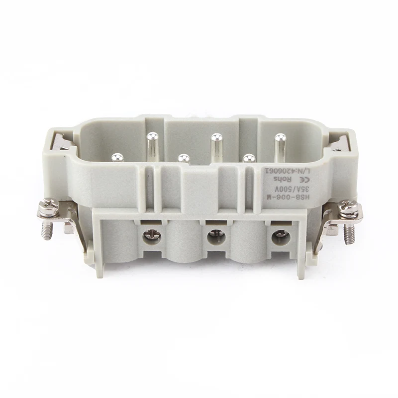HSB-006-M HSB အကြီးစားချိတ်ဆက်ကိရိယာများသည် 35A လက်ရှိအောက်တွင် အလုပ်လုပ်ပါသည်။35A 6 Pin Insert Heavy Duty Connector သည် ဝါယာကြိုးများနှင့် ဆက်သွယ်ရန်အတွက် 6 pins သို့မဟုတ် 12 pins နှစ်ထပ်ဖြစ်သည်။ ၎င်းသည် မတူညီသော လုပ်ငန်းခွင်အခြေအနေများအတွက် ကမ်းလှမ်းနေပြီး အလိုအလျောက်စက်မှုလုပ်ငန်းများနှင့် စက်၏ဝါယာကြိုးချိတ်ဆက်မှု အမျိုးအစားများတွင် အသုံးပြုသည့် လူကြိုက်များသည်။
