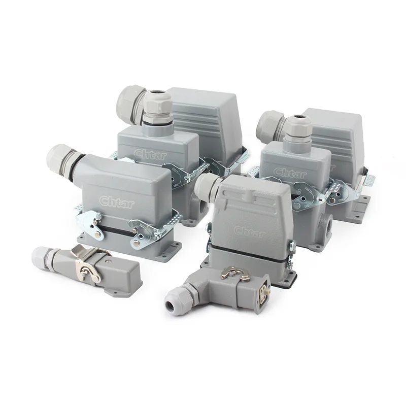 HE Heavy duty connectors များကို မတူညီသော လိုအပ်ချက်အခြေအနေများအတွက် ထုတ်လုပ်ထားပြီး ခိုင်ခံ့သော၊ လုံခြုံသောလျှပ်စစ်ချိတ်ဆက်မှုများနှင့် ဆေးထိုးစက် စသည်တို့တွင် တွင်ကျယ်စွာအသုံးပြုပါသည်။ အလူမီနီယမ်ဖြင့် ပြုလုပ်ထားပြီး အမှုန့်အကာဖြင့် ပြုလုပ်ထားသောကြောင့် ပြင်ပတွင် အသုံးပြုရန် အရည်အသွေးကောင်းမွန်ပါသည်။ ၎င်းသည် စက်ပိုင်းဆိုင်ရာ ဖိစီးမှုမှ ကာကွယ်နိုင်ပြီး ရေနှင့် ဖုန်မှုန့်များ၏ ရန်လိုမှုမှလည်း ကာကွယ်ပေးပါသည်။