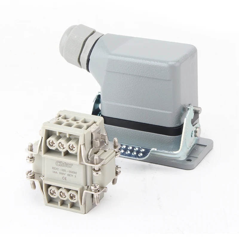 ၎င်းကို 16A H6B Housing heavy duty connector တွင် တပ်ဆင်ထားသည်။ M/F 6 Pin Insert Heavy Duty Connector သည် ခိုင်ခံ့သော PC ပစ္စည်းနှင့် ကြေးဝါငွေဖြင့် ပြုလုပ်ထားသည်။ ကျွန်ုပ်တို့၏ pins များကို ငွေရောင်ဖြင့် ဖုံးအုပ်ထားပြီး အရည်အသွေးကောင်းမွန်ပြီး လျှပ်စစ်စီးကူးနိုင်မှု ပိုမို ကောင်းမွန်ပါသည်။ ၎င်းကို ရေစိမ်ခံနိုင်ရန် တံဆိပ်ရာဘာဖြင့် တပ်ဆင်ထားသည်။